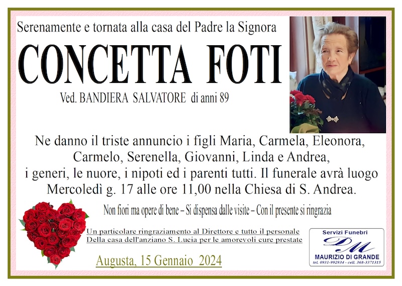 Necrologi – Si è spenta la signora Concetta Foti di anni 89