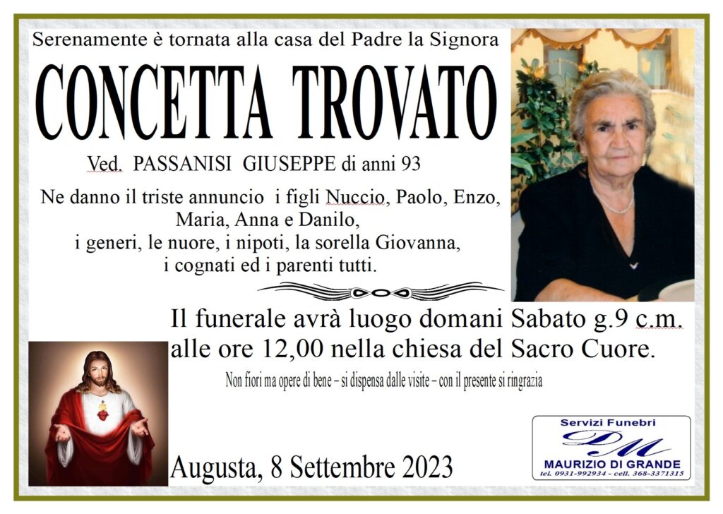 Necrologi – Si è spenta la signora Concetta Trovato di anni 93