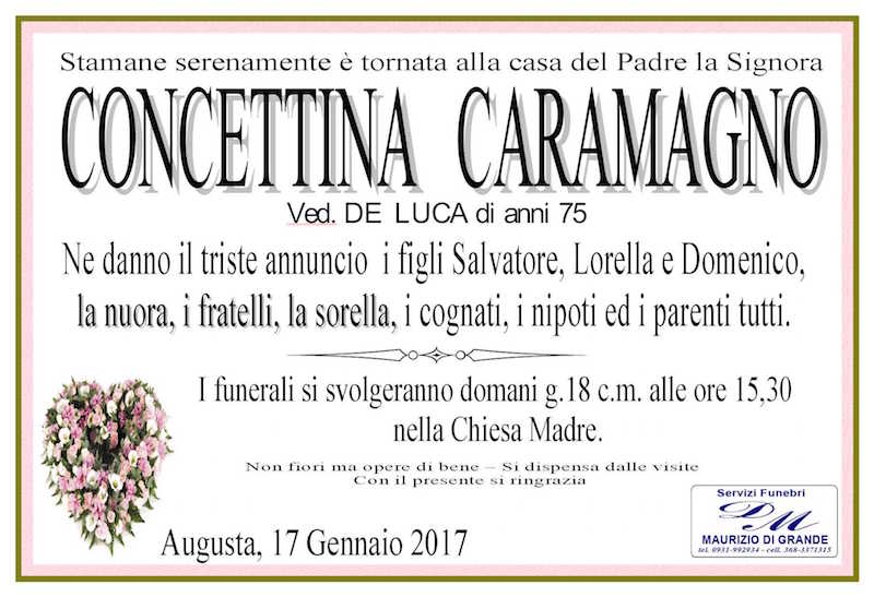 Necrologi – Si è spenta la signora Concettina Caramagno di anni 75