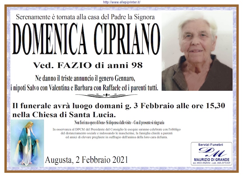 Necrologi – Si è spenta la signora Domenica Cipriano di anni 98