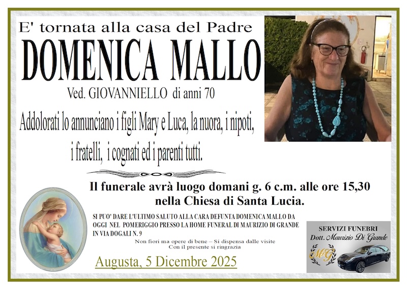 Necrologi – Si è spenta la signora Domenica Mallo di anni 70
