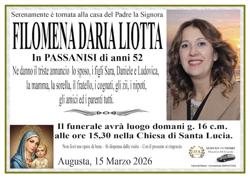 Necrologi – Si è spenta la signora Filomena Daria Liotta di anni 52