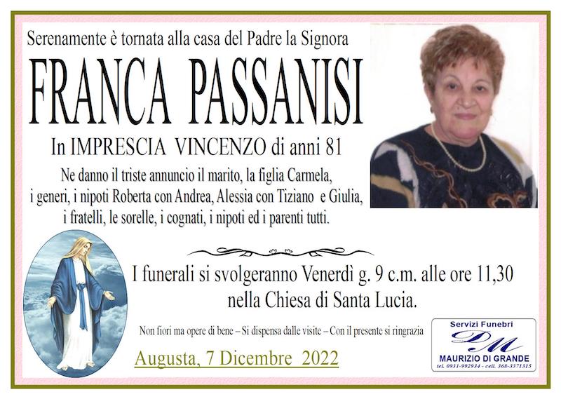 Necrologi – Si è spenta la signora Franca Passanisi di anni 81