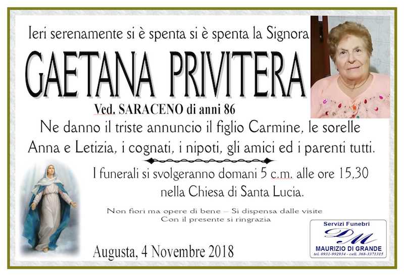 Necrologi – Si è spenta la signora Gaetana Privitera di anni 86