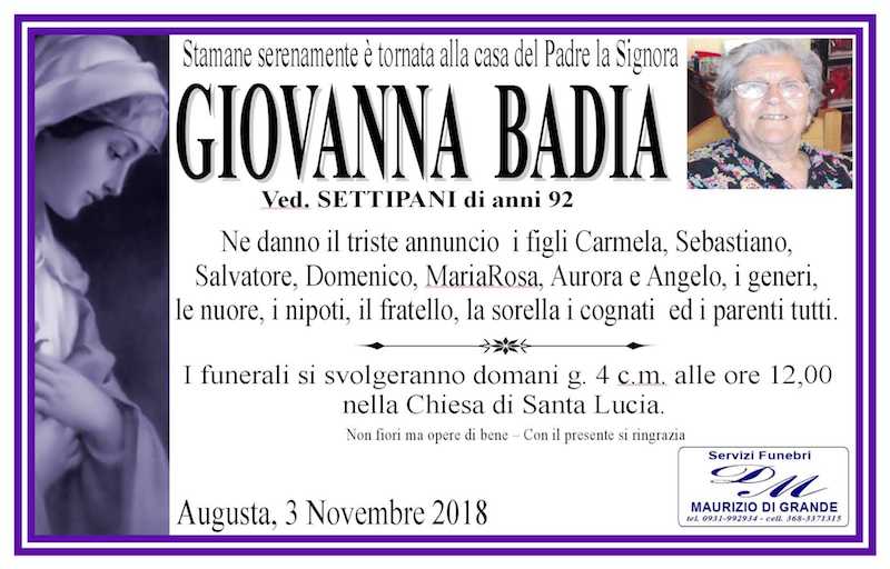 Necrologi – Si è spenta la signora Giovanna Badia di anni 92