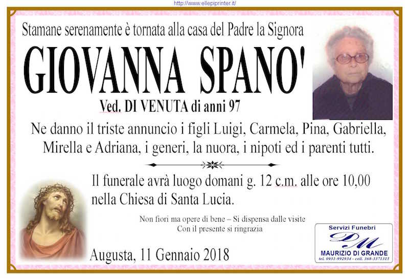Necrologi – Si è spenta la signora Giovanna Spanò di anni 97