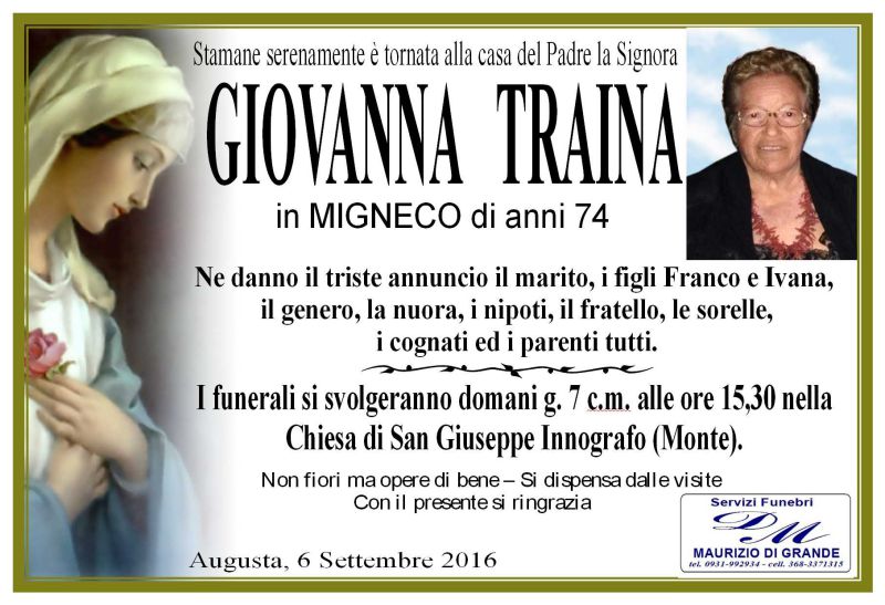 Necrologi – Si è spenta la signora Giovanna Traina di anni 74