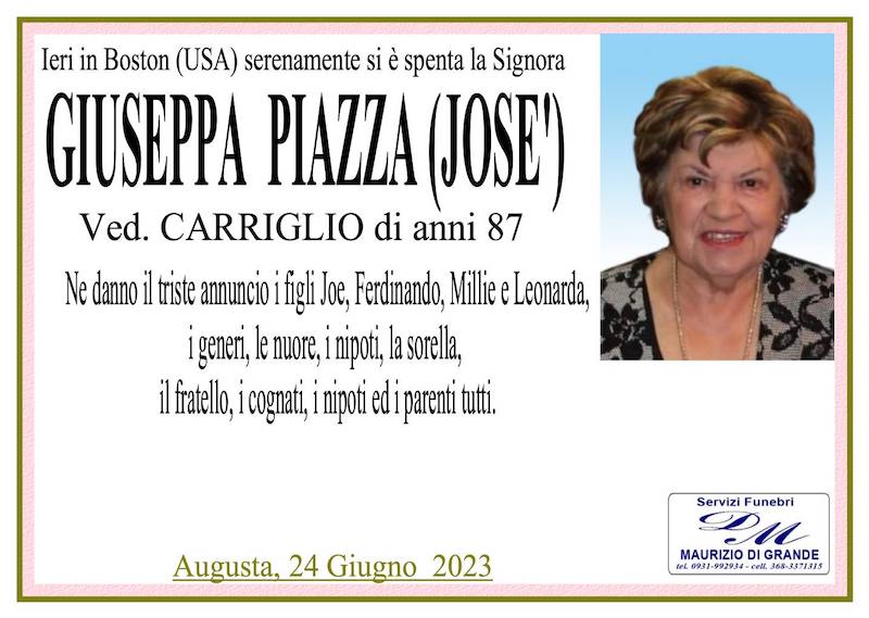 Necrologi – Si è spenta la signora Giuseppa (Josè) Piazza di anni 87