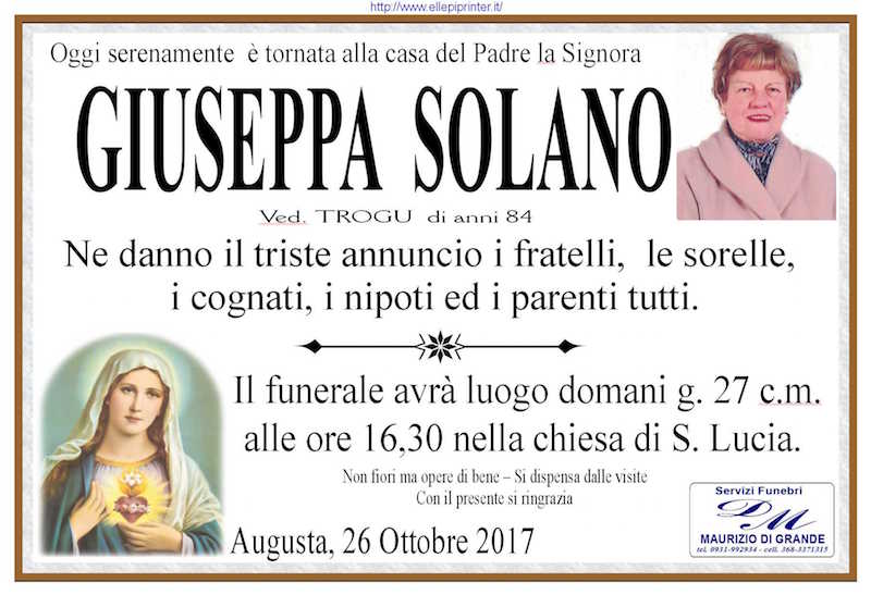 Necrologi – Si è spenta la signora Giuseppa Solano di anni 84