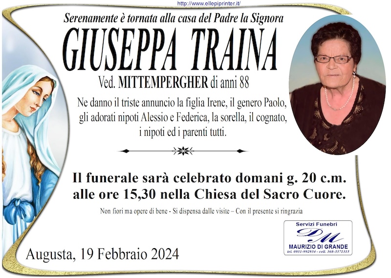 Necrologi – Si è spenta la signora Giuseppa Traina di anni 88