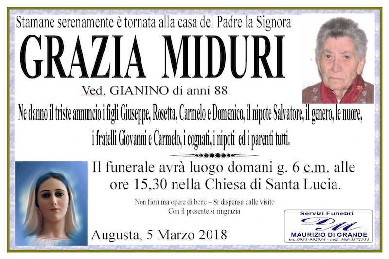 Necrologi – Si è spenta la signora Grazia Miduri di anni 88