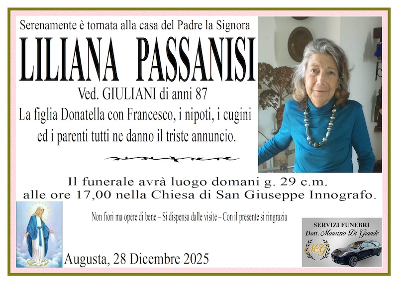 Necrologi – Si è spenta la signora Liliana Passanisi di anni 87