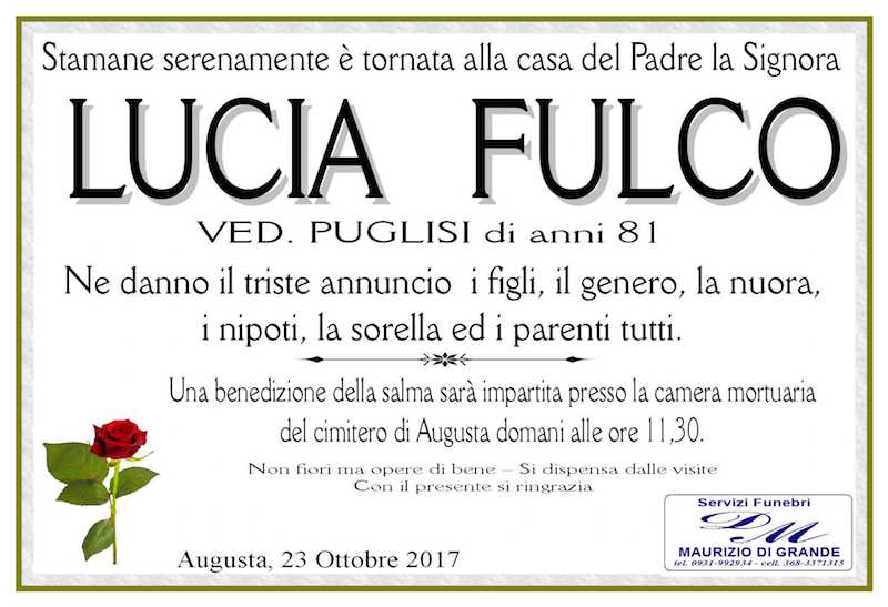 Necrologi – Si è spenta la signora Lucia Fulco di anni 81