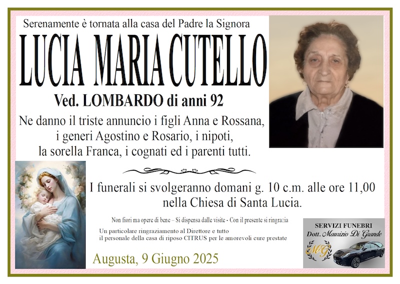 Necrologi – Si è spenta la signora Lucia Maria Cutello di anni 92