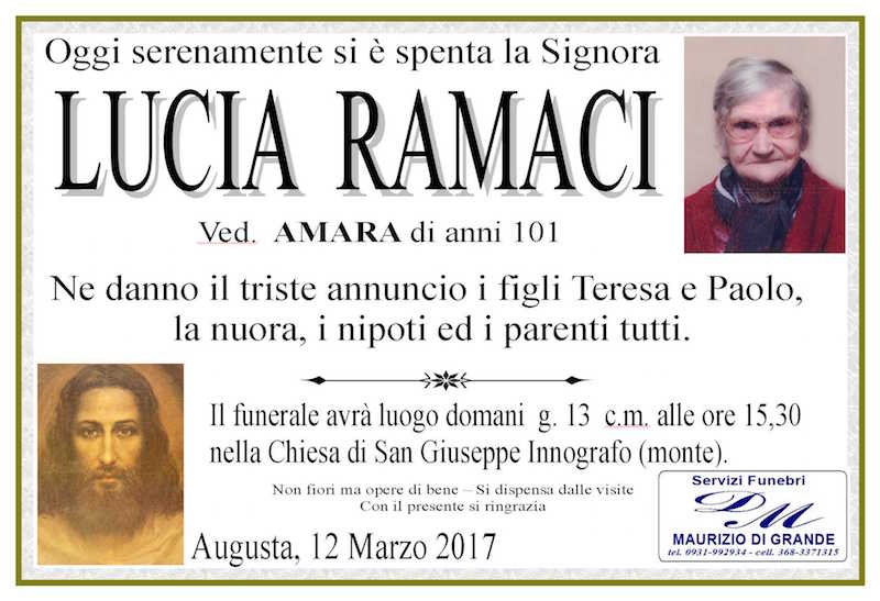 Necrologi – Si è spenta la signora Lucia Ramaci di anni 101