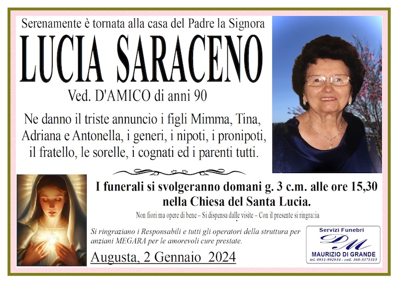 Necrologi – Si è spenta la signora Lucia Saraceno di anni 90
