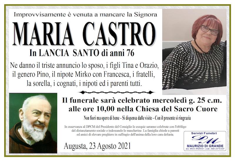 Necrologi – Si è spenta la signora Maria Castro di anni 76