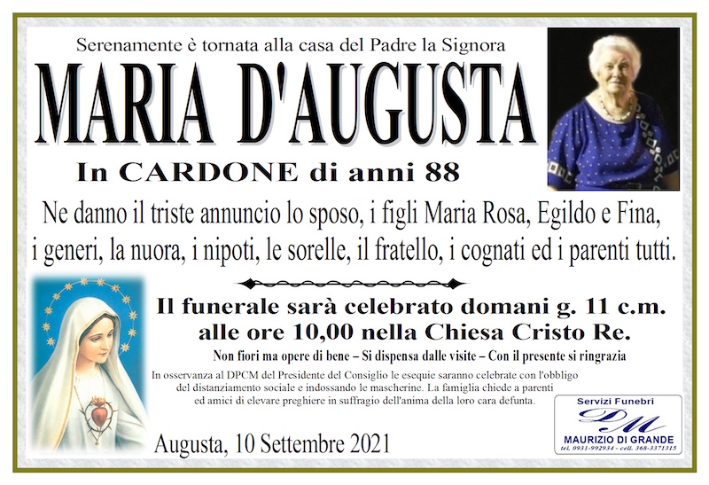 Necrologi – Si è spenta la signora Maria D’Augusta di anni 88