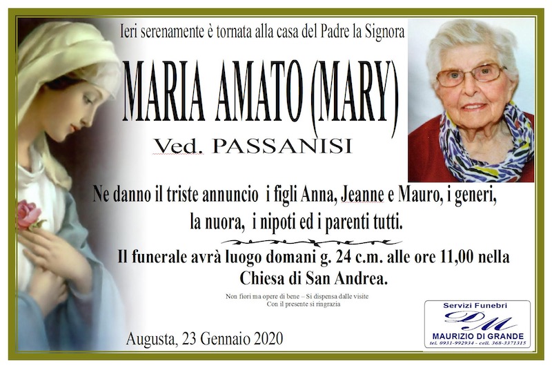 Necrologi – Si è spenta la signora Maria (Mary) Amato