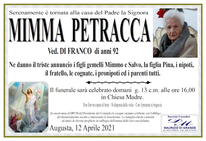 Necrologi – Si è spenta la signora Mimma Petracca di anni 92