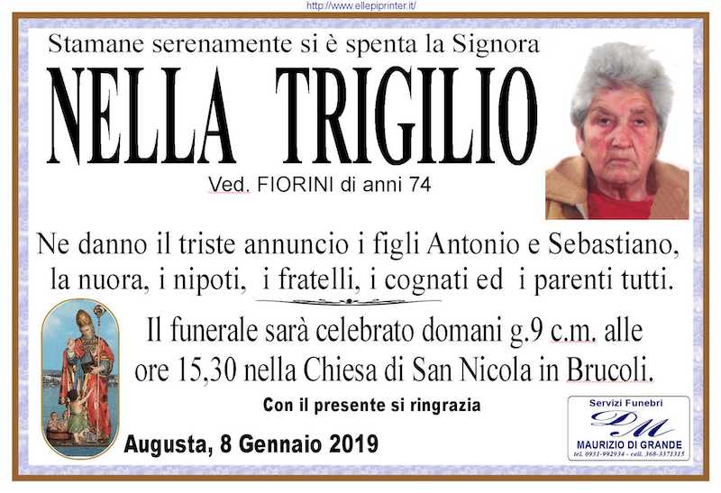 Necrologi – Si è spenta la signora Nella Trigilio di anni 74