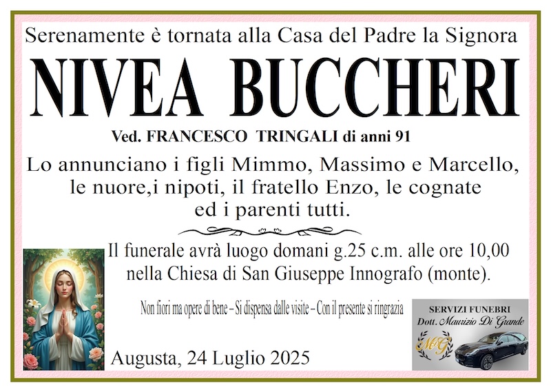 Necrologi – Si è spenta la signora Nivea Buccheri di anni 91