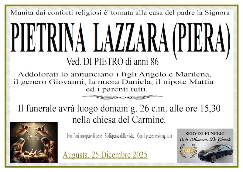 Necrologi – Si è spenta la signora Pietrina (Piera) Lazzara di anni 86
