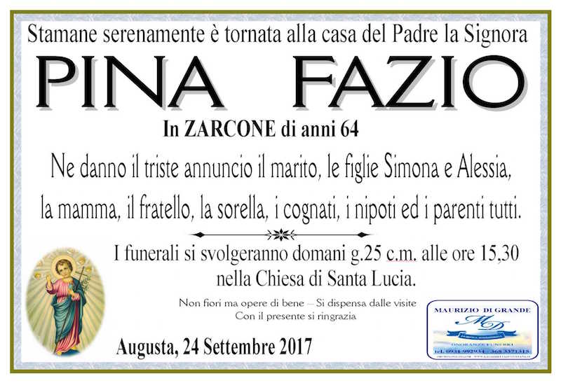 Necrologi – Si è spenta la signora Pina Fazio di anni 64