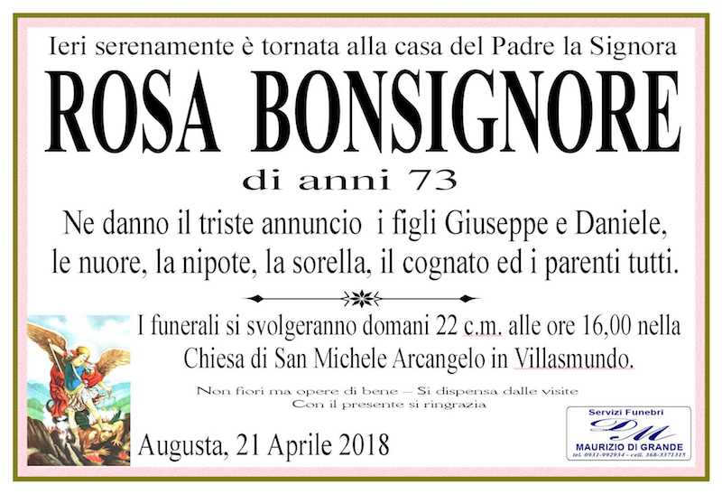 Necrologi – Si è spenta la signora Rosa Bonsignore di anni 73