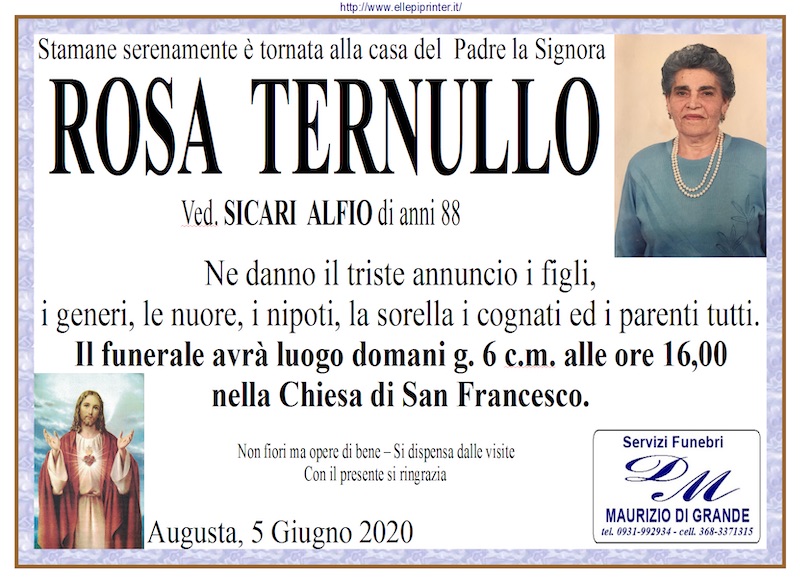 Necrologi – Si è spenta la signora Rosa Ternullo di anni 88
