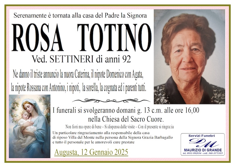 Necrologi – Si è spenta la signora Rosa Totino di anni 92