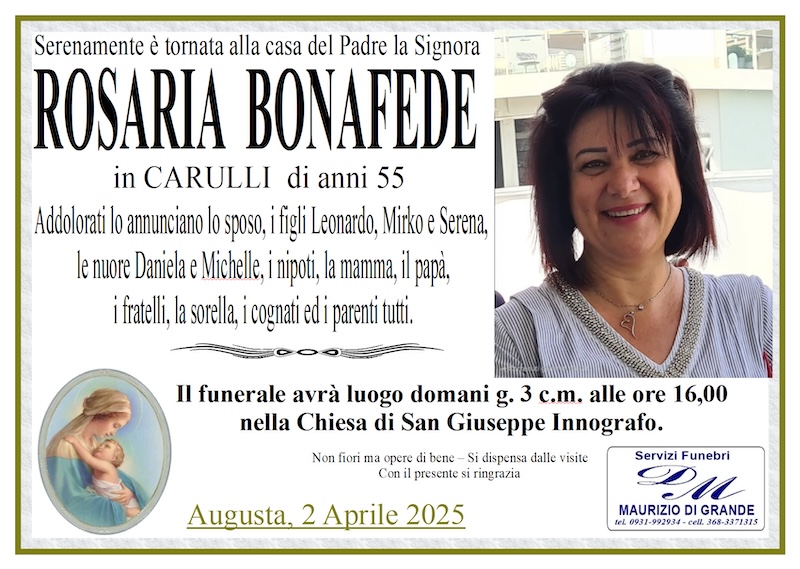 Necrologi – Si è spenta la signora Rosaria Bonafede di anni 55
