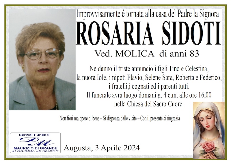 Necrologi – Si è spenta la signora Rosaria Sidoti di anni 83