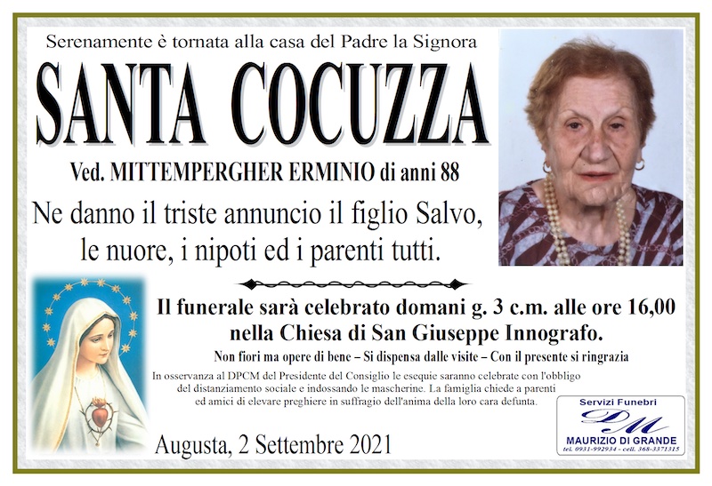 Necrologi – Si è spenta la signora Santa Cocuzza di anni 88