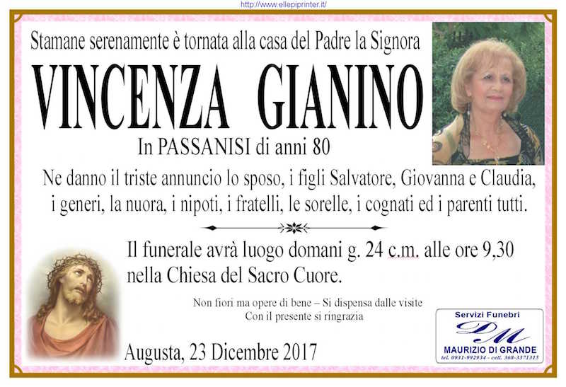 Necrologi – Si è spenta la signora Vincenza Gianino di anni 80
