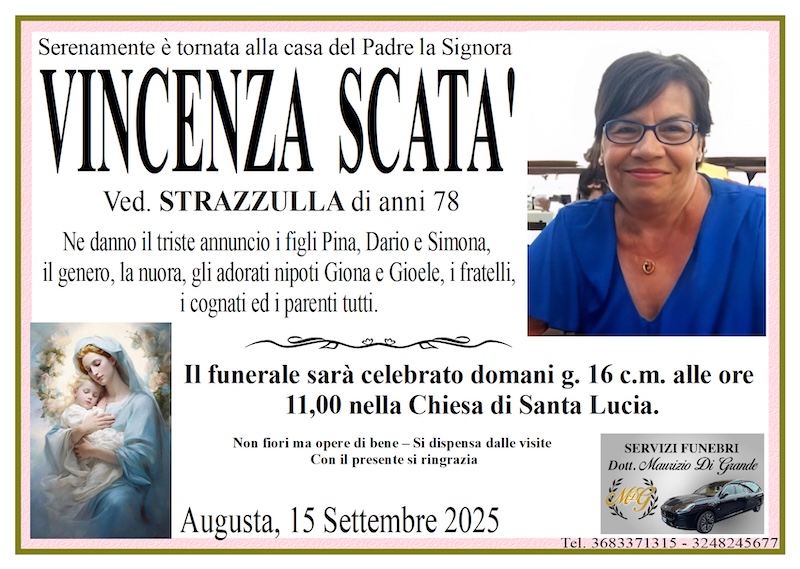 Necrologi – Si è spenta la signora Vincenza Scatà di anni 78