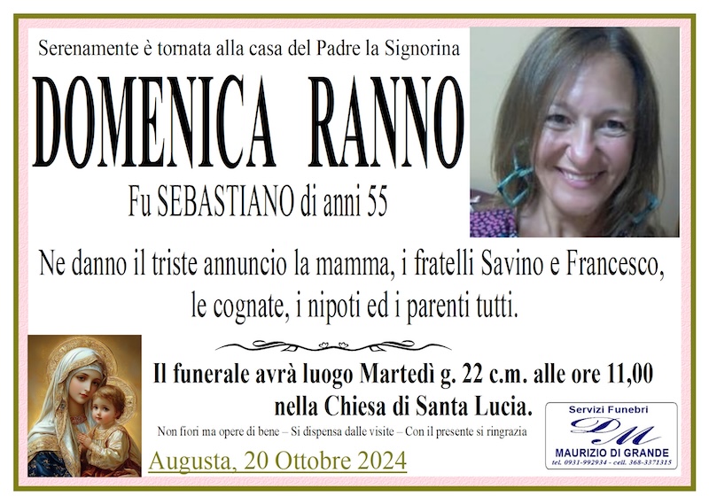 Necrologi – Si è spenta la signorina Domenica Ranno di anni 55