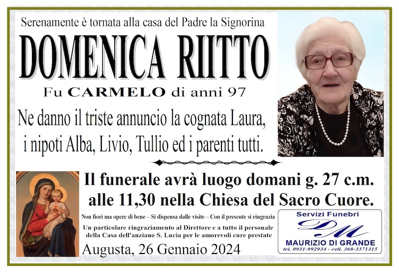 Necrologi – Si è spenta la signorina Domenica Riitto di anni 97