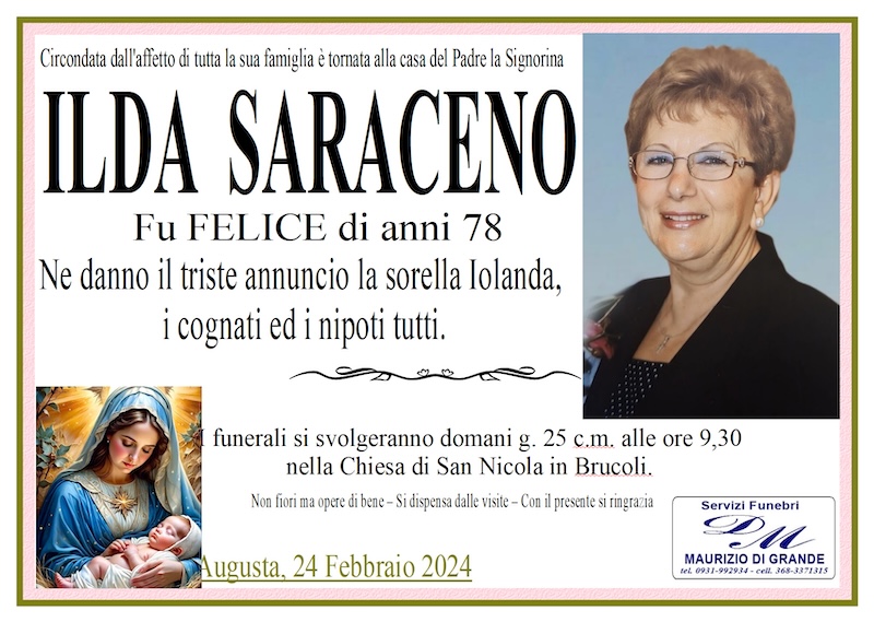 Necrologi – Si è spenta la signorina Ilda Saraceno di anni 78