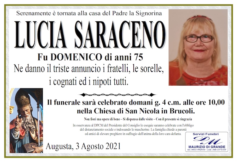 Necrologi – Si è spenta la signorina Lucia Saraceno di anni 75