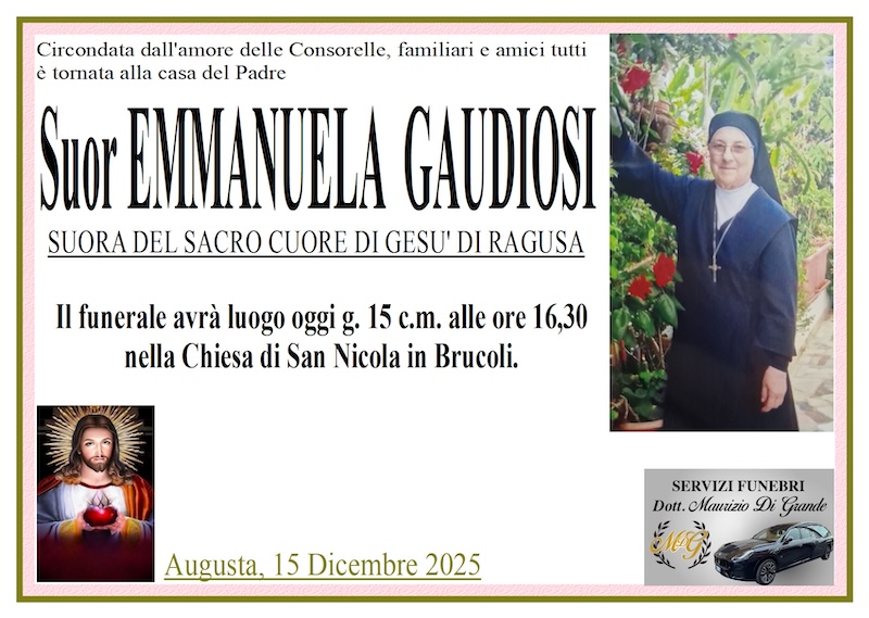 Necrologi – Si è spenta suor Emmanuela Gaudiosi