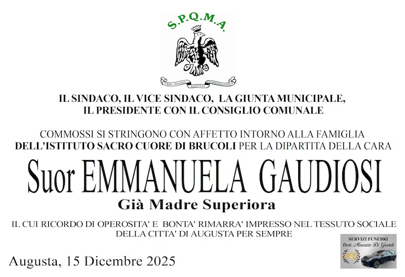 Servizi funebri Maurizio Di Grande – Viale Italia, 99 – Augusta – Tel. 0931 992934 – Cell. 368 3371315