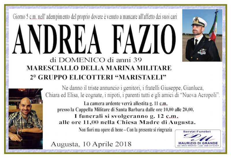 Necrologi – Si è spento il maresciallo Andrea Fazio di anni 39, caduto nell’adempimento del dovere