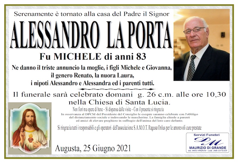 Necrologi – Si è spento il signor Alessandro La Porta di anni 83