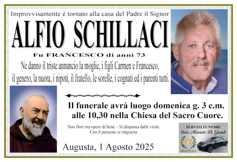 Necrologi – Si è spento il signor Alfio Schillaci di anni 73