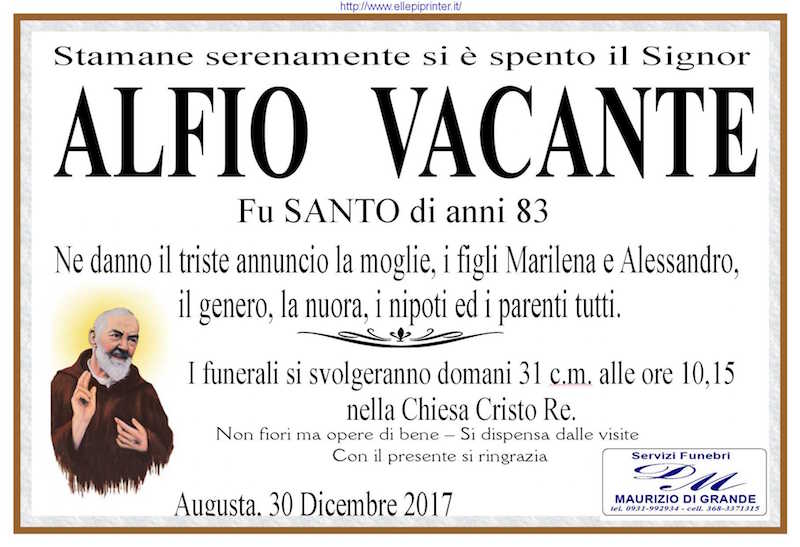 Necrologi – Si è spento il signor Alfio Vacante di anni 83