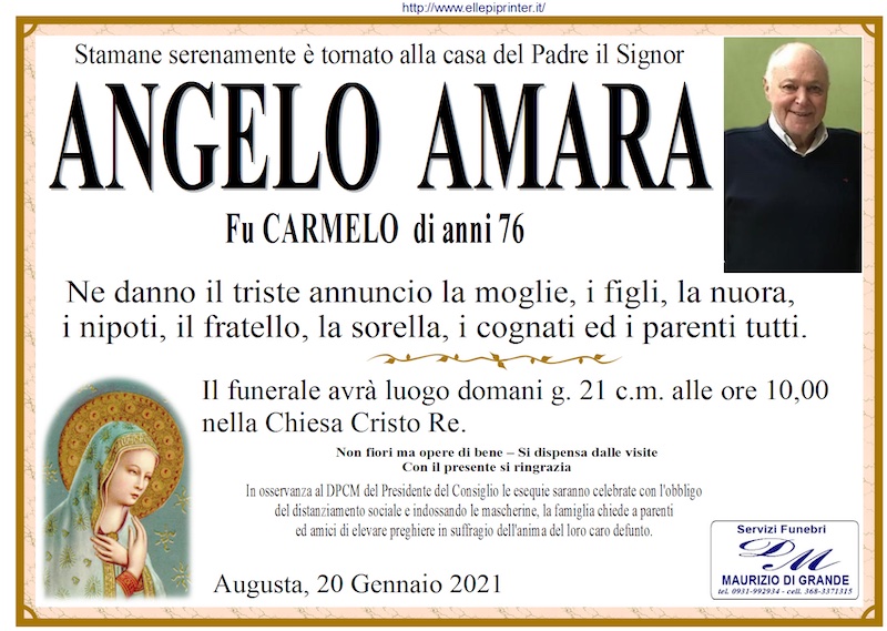 Necrologi – Si è spento il signor Angelo Amara di anni 76