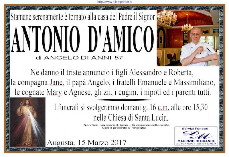 Necrologi – Si è spento il signor Antonio D’Amico di anni 57