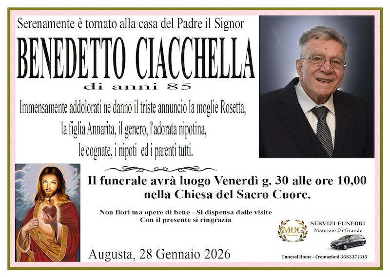 Necrologi – Si è spento il signor Benedetto Ciacchella di anni 85