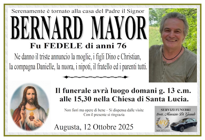 Necrologi – Si è spento il signor Bernard Mayor di anni 76